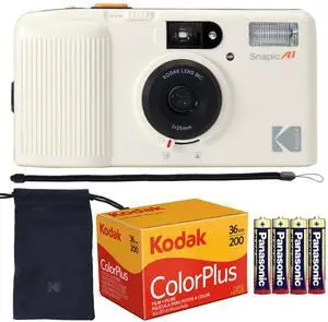 Kodak Snapic A1 35mm Film Camera (Ivory White) with Kodak ColorPlus 200 Color Negative Film (36 Exposures) and 4x Alkaline AAA Batteries