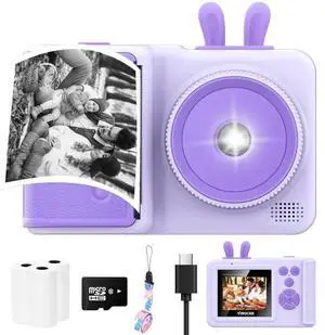Kids Camera Instant Print, Camera for Kids with Printable Photos, Toddler Camera Toys for Children Ages 3-14, Digital Camera Birthday Gifts for Girls (Purple)