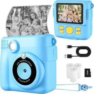 Kids Camera Instant Print, Toddler Cameras Christmas Birthday Gifts for Boys Age 3-12, Digital Video Instant Printer Camera for Kids, Toys for Ages 5-7 Boys (Blue)