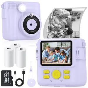Instant Print Camera for Kids with 3 Rolls of Printer Paper, 1080P Toddler Digital Camera Toys for Age 3-12 with 32GB SD Card, Christmas & Birthday Gifts for 3 4 5 6 7 8 Year Old Girls & Boys (Purple)