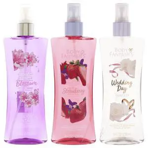 Body Fantasies Kit by Body Fantasies for Women - 3 Pc Kit 8oz Body Spray - Signature Japanese Cherry Blossom, 8oz Body Spray - Strawberry Fantasy, 8oz Body Spray - Signature Wedding Day Fragrance