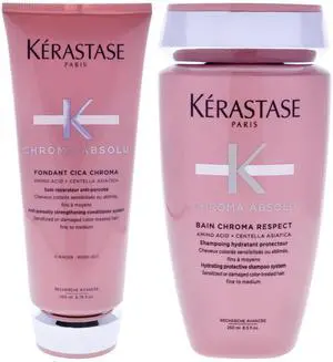 Chroma Absolu Kit by Kerastase for Unisex - 2 Pc Kit 6.8oz Chroma Absolu Fondant Cica Conditioner, 8.4oz Chroma Absolu Moisturizing Protective System Shampoo