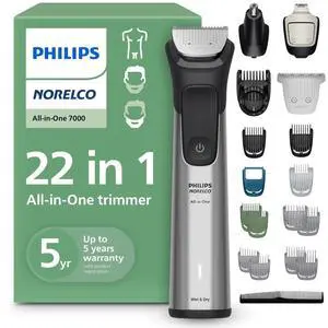 Our All-in-One trimmer offers the versatility and precision you need with 22 quality tools designed for face, head and body. Self-sharpening blades stay as sharp as day 1 and the premium precision comb helps achieve look and style you want.