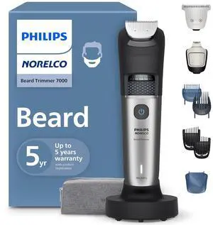 Features: The Philips Norelco Beard Trimmer 5000 Series features metal beard trimming blades that deliver powerful precision & stay as sharp as day 1 with no blade oil required. Our beard styler has 40 length settings in 0.2 mm steps, helping you craft your facial hair as precisely as you need including 3-day stubble, short beard, or long beard looks. Attachable Lift&Trim combs and click-on detail trimmer capture stray hairs and add extra definition to your style Thanks to BeardSense technology, this Philips Norelco trimmer scans your beard density 125x per second to boost trimming power in denser areas, giving you the right power for the best result. The innovative beard hair mess collector efficiently catches up to 80% of trimmed hairs¹, giving you less hassle as you style your beard. Designed for comfort and ...