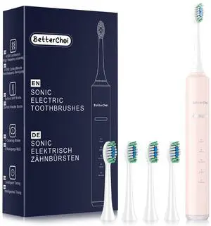 Betterchoi Sonic Electric Toothbrush for Adults, USB Rechargeable Toothbrush - 41,000 VPM Maglev Motor - 4 Brush Heads - IPX7 Waterproof, 180-Day Battery Life, 5 Cleaning Modes & Smart Timer, Pink