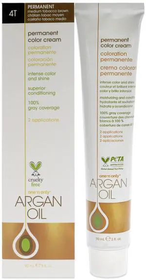 Argan Oil Permanent Color Cream - 4T Medium Tobacoo Brown by One n Only for Unisex - 3 oz Hair Color