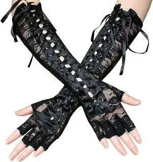 15.3‘’ Women's Sexy Elbow Length Fingerless Lace Up Arm Tie Long Lace Gloves