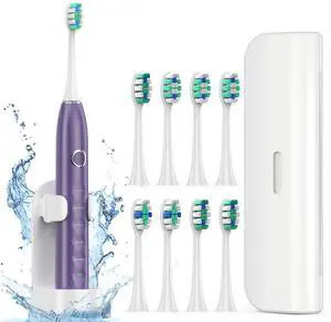 Electric Toothbrush for Adults with 8 Brush Heads, Sonic Toothbrush Rechargeable with a Holder & Travel Case, 2.5 Hours Charge for 120 Days Use - Purple