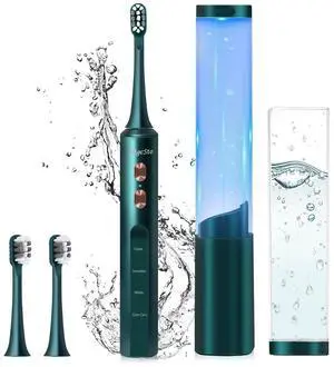 Electric Toothbrush w UV Sanitizer Cup - 4 Modes and 3-Speed Switching - Powerful Toothbrush - 48,000 VPM Motor and Wireless Charging w Smart Timer (Green)