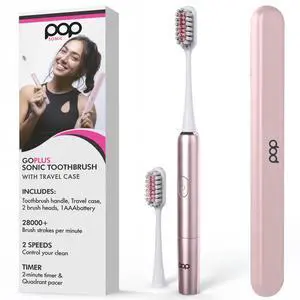 Go Plus Travel Electric Toothbrush (Rose Gold) | 2 Speeds w/ 18000-24000 Vibrations Per Minute - The Ultimate Set | 8+ Colors to Choose from