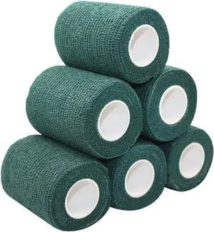 COMOmed Self Adherent Cohesive Bandage Latex 3"x5 Yards First Aid Bandages Stretch Sport Athletic Wrap Vet Tape for Wrist Ankle Sprain and Swelling,Dark Green (6 Rolls)