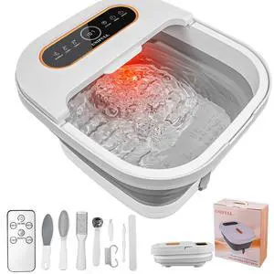 Collapsible Foot Spa Bath with Heat, Touch Screen, Remote Control, Massage Rollers, Timer, Bubble, Foot Pedicure Kit, Temperature Control Pedicure Foot Spa, Foot Bath