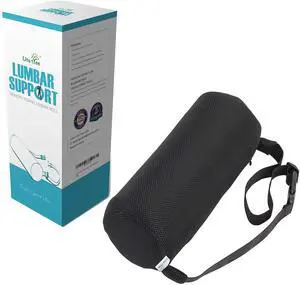 Ergonomic Lumbar Support Pillow  Memory Foam for Lower Back Pain Relief, Adjustable Straps & Mesh Cover for Office, Gaming, Car Seat & Home Essentials (Black)