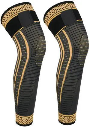 Long Copper Knee Braces for Women and Men Full Leg Compression Sleeves Anti Sliping Ventilation Long Knee Support with Wraps for ACJ, PCL, Meniscus Tear, Arthritis (Copper, XX-Large)