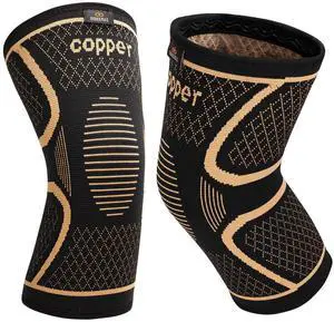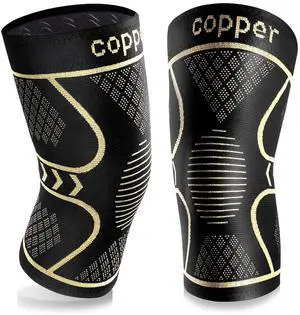 Copper Knee Brace for Women Men 2 Pack, Knee Compression Sleeve for Knee Pain, Arthritis, Running,Sports and Recovery Support, M
