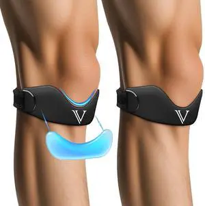 Silicone Patellar Tendon Support Strap 2-Pack, Knee Brace for Women Men, Adjustable Non-Slip Patella Band Support (Black)