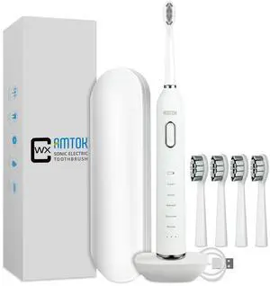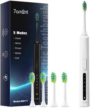 7AM2M Sonic Electric Toothbrush for Adults and Kids, 40000VPM Power Rechargeable Toothbrushes, 5 Modes, with 4 Brush Heads, 2 Minutes Built in Smart Timer,One Charge for 60 Days (White)