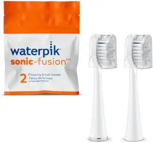 Waterpik Genuine Full Size Replacement Brush Heads With Covers for Sonic-Fusion Flossing Toothbrush SFFB-2EW, 2 Count White
