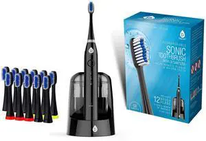 Electric Toothbrush, Sonic Type for Adults & Teens, 8 Brush Heads, Travel Case, 6 Modes, 40000 VPM Electric Motor, IPX7 Waterproof, 2 Minutes Timer, Wireless Charging, One Charge for 100 Days (Black)