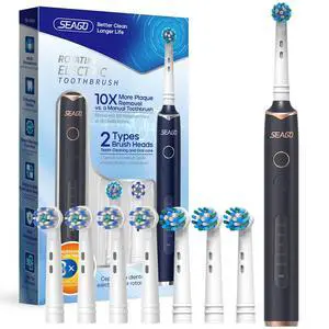 7AM2M Sonic Electric Toothbrush with 6 Brush Heads for Adults&Kids, One Charge for 120 Days, Wireless Fast Charge, 5 Modes, 40000VPM Powered Toothbrush, 2 Minutes Built in Smart Timer (Black)