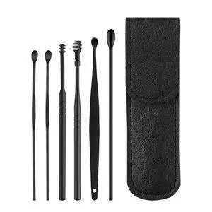 12 Pcs/2 Sets Earwax Removal Kit, Ear Cleaning Tool Set Ear Pick Earwax Removal Kit Stainless Steel Ear Clean Tool Safe Ear Wax Removal Tool Ear Wax Remover with PU Case (Black+Green)