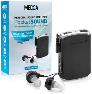Digital Personal Sound and Voice Amplifier - Pocket Sound by MEDca with Single Ear and Double Ear Headphone Earbuds with Microphones The Best Hearing for Adults or Listening Device