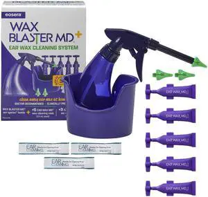 Ear Wax Cleaning System - Complete Earwax Irrigation Kit for Stubborn and Routine Earwax Cleaning - Clinically Proven Results - with 5-ct Single Use Vials + 3 additional Ear Clean MD Packets