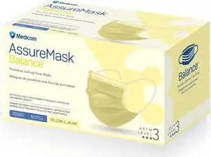 MEDICOM AssureMask Balance ASTM Level 3 Disposable Face Masks, Pack of 50 - Yellow