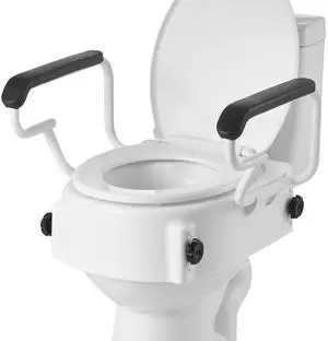 Raised Toilet Seat with Arms, 300 lbs Load Capacity, 3.5-Inch Lift Height, Widened Commode Elevated Toilet Seat Riser with Padded Handles for Seniors, Elderly, Handicap, Disabled, and Adults