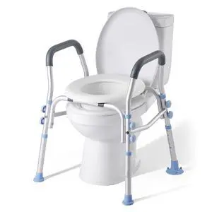 Raised Toilet Seat with Arms, 300 lbs Load Capacity, 3-Level Adjustable Height, Widened Commode Elevated Toilet Seat Riser with Padded Handles for Seniors, Elderly, Handicap, Disabled, Adults