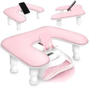 Arm Rest for Nails Tech with Nail Table Mat and Phone Holder,Adjustable Base U-shaped Manicure Nail Hand Rest Stand Pillow Cushion(Pink)