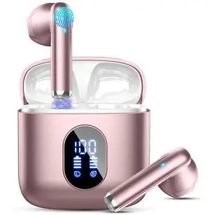 Wireless Earbuds, Bluetooth Headphones 5.4 with ENC Noise Cancelling Mics, 30H Bluetooth Ear buds Bass with Dual LED Display Charging Case, IP7 Waterproof Wireless Earphones for Android/iOS, Rosegold
