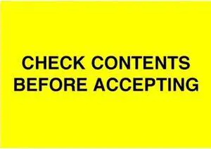 4" x 6" Check Contents Before Accepting Labels (500 per Roll)