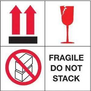 TAPECASE 16U881 4" x 4" Adhesive Back Shipping Labels, Fragile 4 Square, Pk500