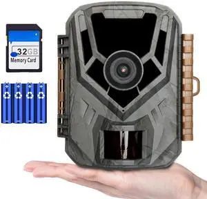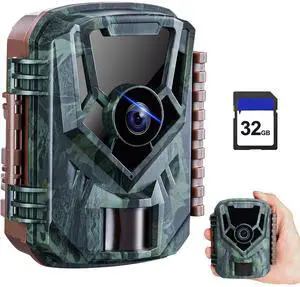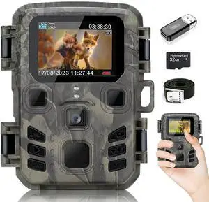 Mini Trail Camera 32MP 1080P,Deer Camera with Game Cameras with Night Vision Motion Activated Waterproof for Wildlife Monitoring 32GB SD Card with Card Reader
