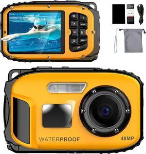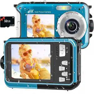 4K Underwater Camera 11FT Waterproof Camera with 32GB Card 56MP Autofocus Dual-Screen Selfie Underwater Camera for Snorkeling Waterproof Compact Floatable Digital Camera 1250mAh Battery Type-C (Blue)