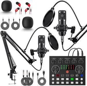 Podcast Equipment Bundle, with BM800 Podcast Microphone and V8 Sound Card, Voice Changer - Audio Interface -Perfect for Recording, Singing, Streaming and Gaming (V8-Black)
