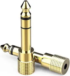 6.35mm (1/4 inch) Male to 3.5mm (1/8 inch) Female Stereo Audio Adapter Converter for Guitar Headphones Amp , Gold Plated 2 Pack