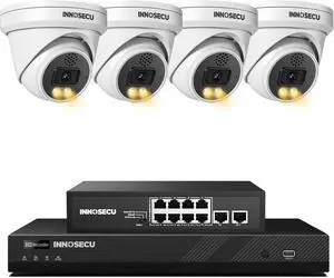 5MP Security Camera (4×IND5GD97K) Bundled with an 16CH NVR (IN216P00) and a 8 Port PoE Switch (SCGAF0820) Form a Plug-and-Play PoE Camera Security System Featuring AI Detection