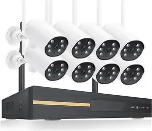 DVR Surveillance Kits, 3MP HD Wireless CCTV Camera System Two-Way Outdoor Video Surveillance Kit 8CH NVR P2P IP Security Camera Set(None,8CH NVR 8 Cameras)