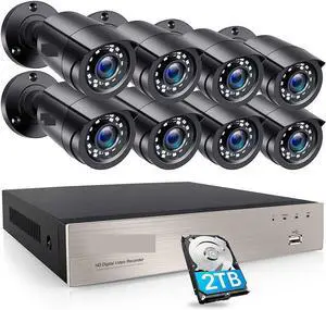 DVR Surveillance Kits, 8CH CCTV System H.265+ 5MP HD-TVI DVR Kit 8 1080p 2MP Home Security Outdoor Night Vision Camera Video Surveillance Kit(None,Nero)