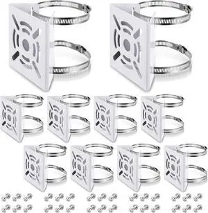 10 Pcs Universal Vertical Pole Mount for Security Camera Wall Mounting Bracket with 6 Loops Solid Metal Pole Bracket for CCTV Camera Indoor Outdoor Solar Panel LED Wall/ Stage Light (White)