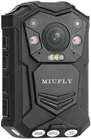 MIUFLY 1296P HD Police Body Camera with 2 Inch Display, Night Vision, Built in 32G Memory and GPS for Security