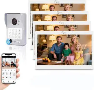 Wired Video Apartment Intercom System,10 Inch Touch Monitor with 1080P Doorbell Door Phone Kit,Supporting 5 in 1 Unlocking,Minitoring Motion Detecting for Home Villa,Tuya (1 doorbell + 4 monitor)