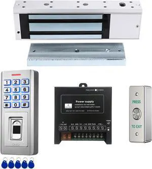 Waterproof Electric Magnetic Fingerprint Door Access Control Kit - 600 lb Holding Force, RFID Keypad/Reader, 5 ID Cards, 110V Power Supply & Metal Exit Button - Secure Lock System (K5EM-600LB KIt)