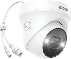 ZOSI 5MP PoE Add-on Camera,Person Vehicle Detection,2 Way Audio,Color Night Vision,Spotlight Siren,Weatherproof Outdoor Indoor Dome Home Security Camera Only Compatible with Same Brand 5MP 4K POE NVR