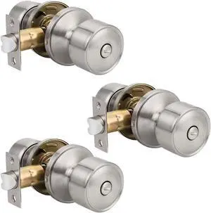 3 Pack Indoor Keyless Door Locks for Bedrooms, Privacy Bathroom Interior Door Knob with Lock in Satin Nickel, Privacy Modern Door Handle Interior for Bath and Bed