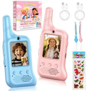 Walkie Talkie for Kids with Video: 2 Pack Rechargeable Toddler Toys with HD Camera & Voice Changer, Long Range Gift Toys for Boy & Girl Age 3-8 for Outdoor Play, Camping (Pink-Blue)