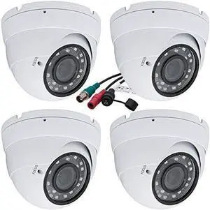 Evertech 1080p Dome Security Cameras 1920x1080 high Resolution Weatherproof Indoor/Outdoor, Night Vision up to 98ft, 2.8-12mm Adjustable Lens White Metal casing (Pack of 4)