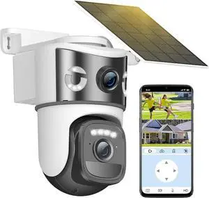 4K Solar Security Cameras Wireless Outdoor, 5G/2.4G Cameras for Home Security With Dual Lens, 360°PTZ Solar Powered Security Camera with Color Night Vision, PIR Sensor, Spotlight Siren, 2-Way Audio